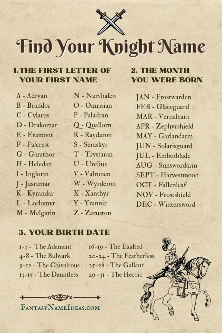 Remember, a knight’s name is more than just a title—it is a symbol of your character, honor, and the legacy you wish to leave behind. So, choose wisely, noble knight, and may your name be spoken with reverence and admiration for generations to come!
